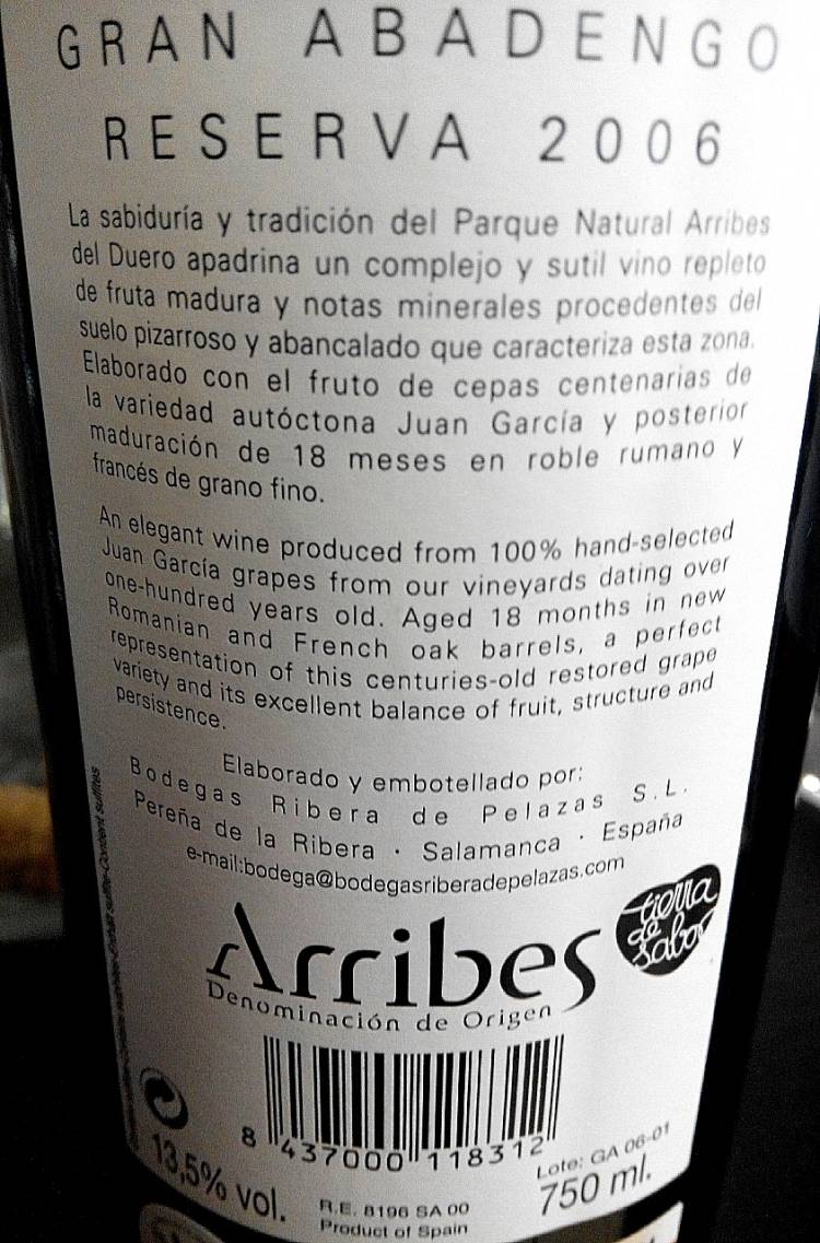Gran Abadengo 2006, es otro de los vinos que hemos podido catar recientemente de Bodegas Ribera de Pelazas de la zona de Arribes del Duero.
