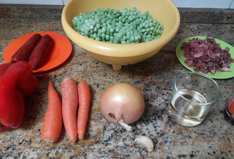 Veréis a continuación que los ingredientes son los mismos para ambas recetas y nosotros le añadimos unos ligeros toques, como es que le ponemos chorizo, medio vaso de vino blanco y un chorrito de salsa de soja.