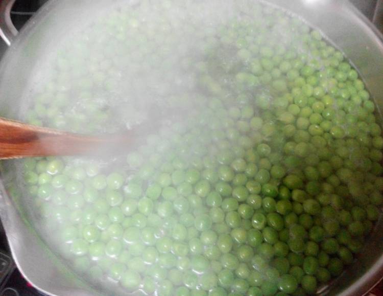 Lo primero es poner agua a hervir en una olla entre 3 y 4 litros con 10 gramos de sal por litro. Cuando rompan a hervir se echan los guisantes congelados y se deja a fuego vivo. Cuando vuelva a hervir, bajamos el fuego al medio y esperamos entre 8 y 10 minutos y ya estarán los guisantes.