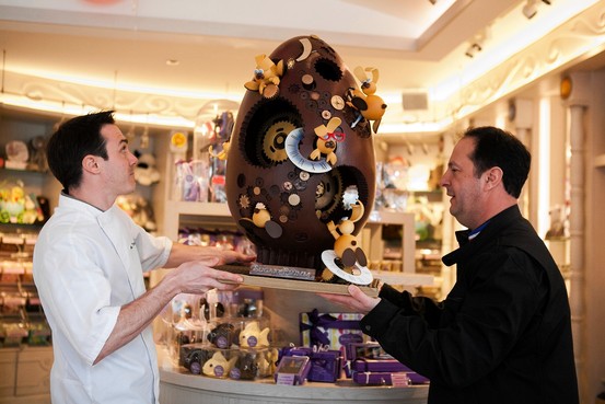 Finalmente nos referimos a solo huevos de Pascua de chocolate que se ha vendido en 5.000 dolares, lo cual es una salvajada pero comparado con lo anterior parece una minucia. Realizado por el afamado maestro chocolatero francés Thierry Atlan, se trata de un huevo que representa el universo de unas 30 pulgadas de alto por 19 pulgadas de ancho, pintado completamente a mano y que ha tardado en realizarse nada menos que 3 semanas con chocolate en diferentes formas.