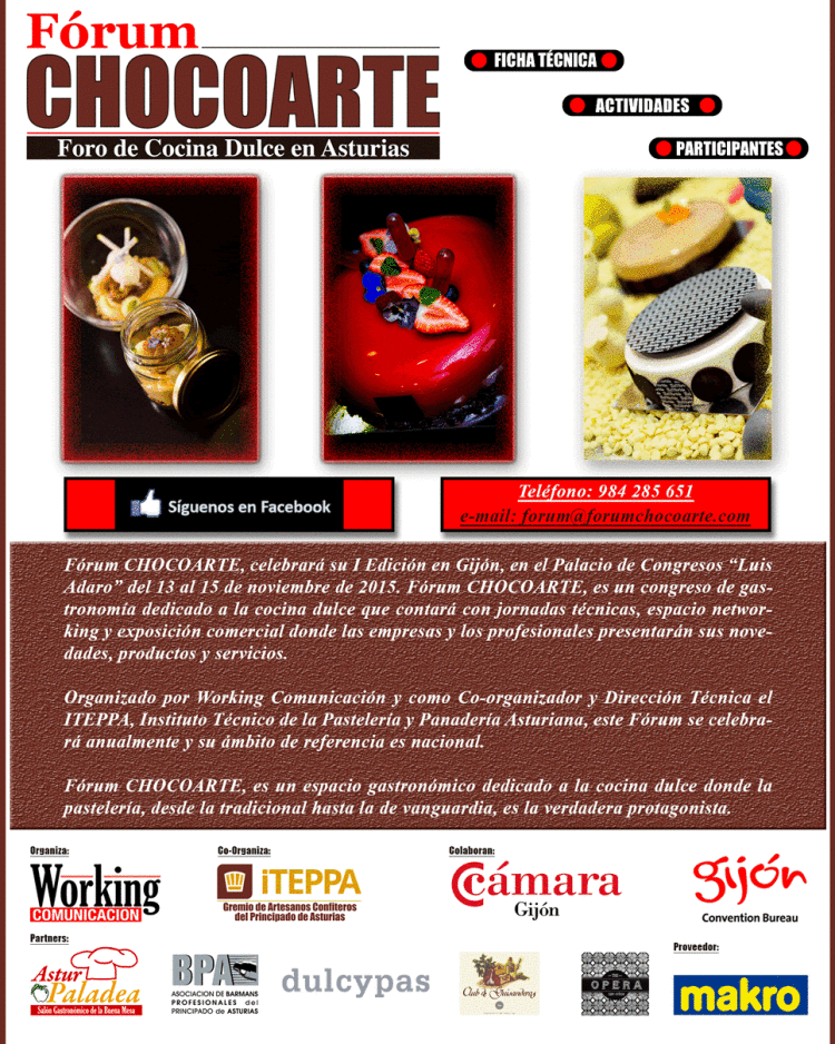 El Fórum Chocoarte tiene entre sus objetivos poner en valor el sector de la pastelería asturiana, región que se contempla como la segunda más importante en cocina dulce de nuestro país, en este espacio se podrá contemplar la tradición, la innovación y vanguardia en pastelería y cocina dulce, además pretende ser el lugar en el que conocer, degustar y comprar los mejores productos dulces, y dadas las fechas en las que se celebra, también los turrones y otros dulces navideños.