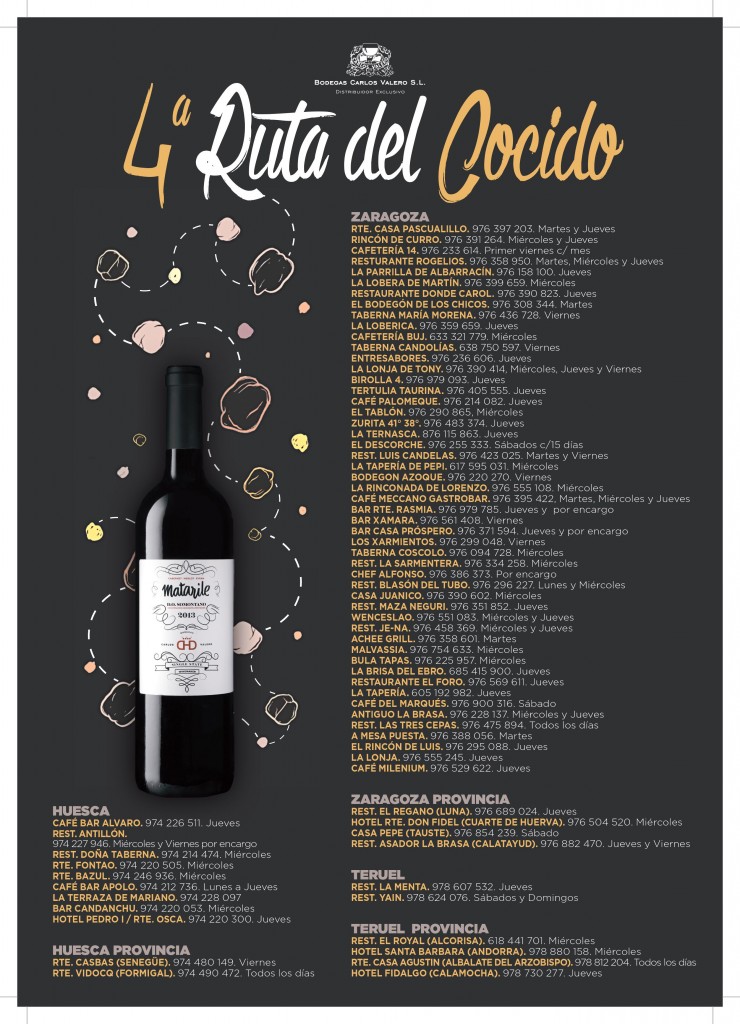 Este mismo fin de semana podemos asistir a la IV Ruta del Cocido de Aragón, cita indispensable dentro del calendario gastronómico aragonés que año tras año se consolida y que dio comienzo el pasado 14 de diciembre y se prolongará hasta el próximo 31 de marzo y en la cual participan más de 70 establecimientos de las tres provincias aragonesas.