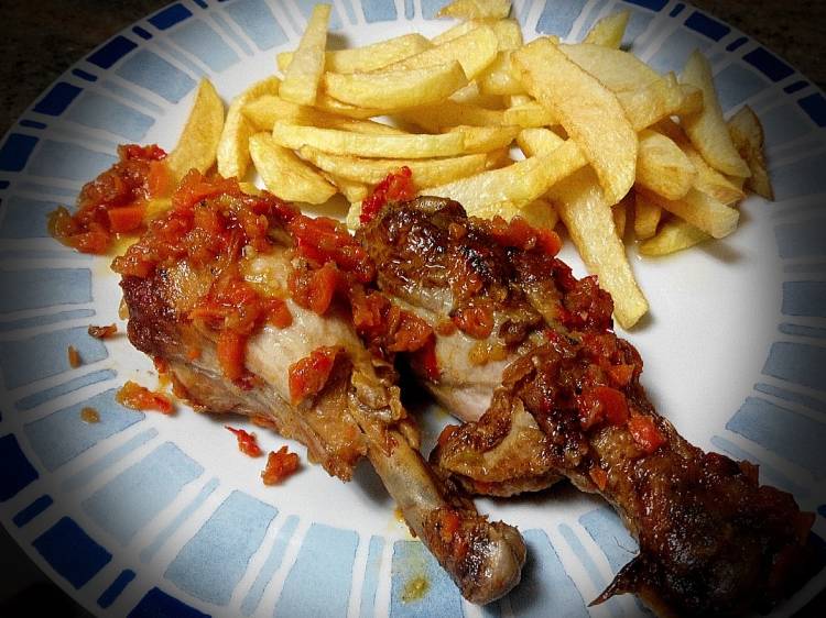 Como casi siempre, se trata de una receta muy pero que muy sencilla y muy rica. Nuestro consejo es que hagáis dos muslos por comensal, ya que con la guarnición, ya sean patatas fritas, cocidas, arroz, verduras,... o lo que sea, seguro que es un plato que alimenta y llena.