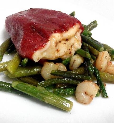 Con ayuda de unas pinzas colocaremos nuestras judías en un plato de presentación y rociaremos con un poco mas de la salsa, servimos y solo nos queda disfrutar y esperar que os haya gustado esta receta que os traigo calentita directamente de los fogones de mi cocina.