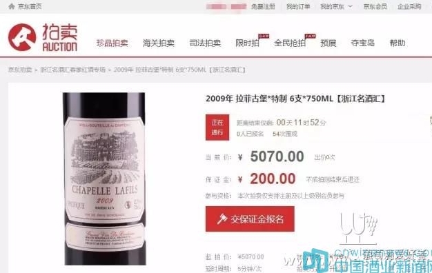 La falsificación de Lafite o imitación, es de una empresa china con sede en Zhejiang que estaba utilizando en JD.com su sitio web o sección subasta. 拉菲古堡特制, la búsqueda de este vino, se traduce aproximadamente como "Château Lafite Rothschild Reserva Especial" en Inglés.