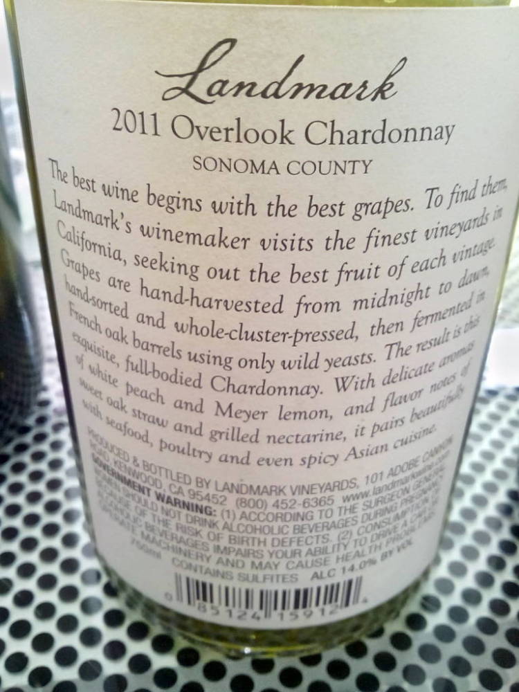 Landmark Vineyards Overlook Chardonnay 2011, blanco, vino de los Estados Unidos, en concreto de Sonoma Conty California.