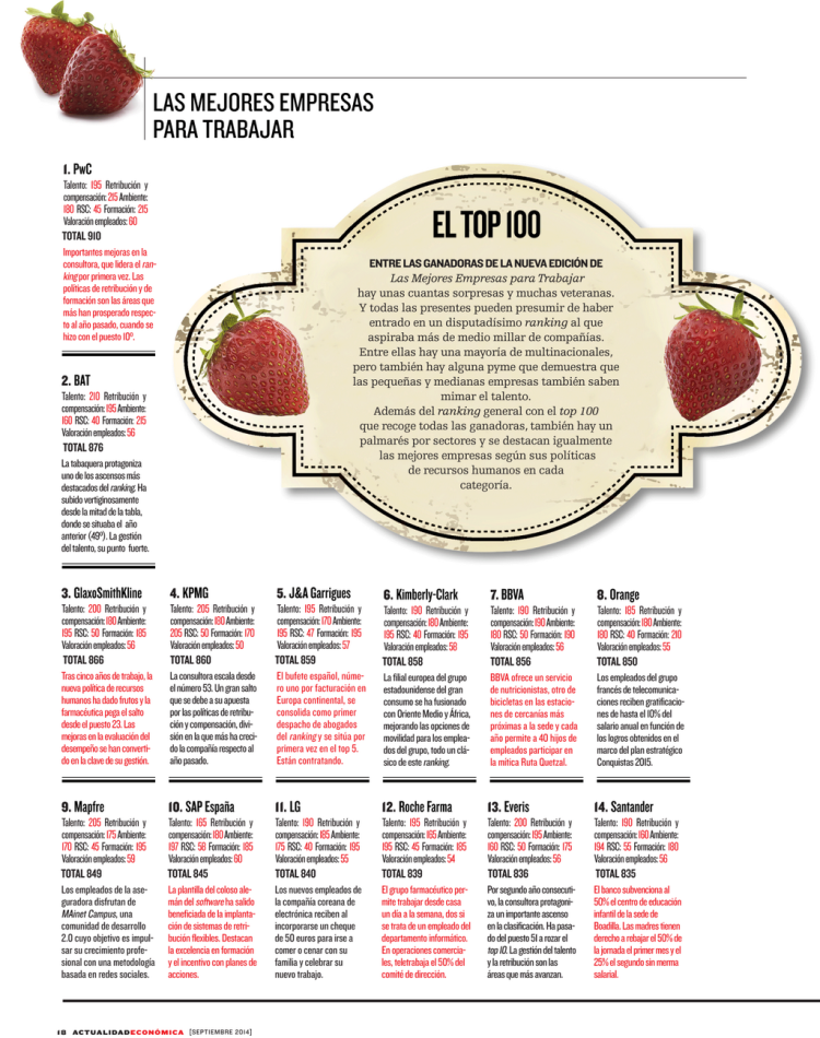 Las mejores empresas para trabajar en España en este 2014 según la revista Actualidad Económica.