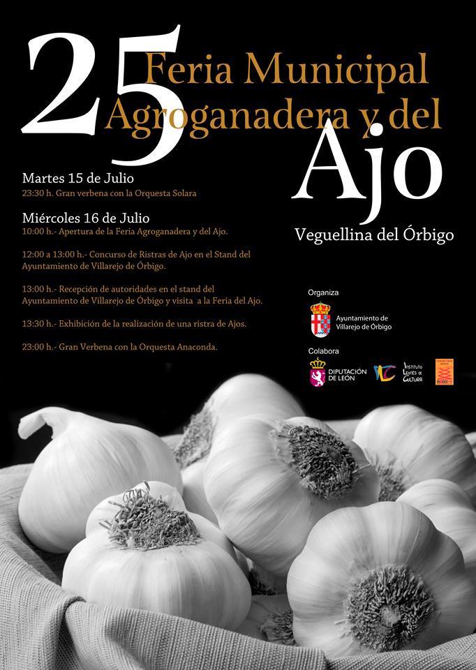 Y por si acaso León no sabía ya a ajo, comentaros que esta semana también se celebra en otra localidad leones su feria del ajo, como es la 25 Feria Municipal Agroganadera y del Ajo de Veguellina de Órbigo. Además de los 58 puestos de ajos, habrá otros 50 puestos de artesanos, 35 de ropa y alimentación y 30 más de productos varios, es decir, un total de 175 stands durante tres kilómetros de recorrido en los que se van a exponer y vender productos y, también, en los que se podrá degustar platos típicos de la zona como el pulpo o el escabeche típico de hace 50 años.