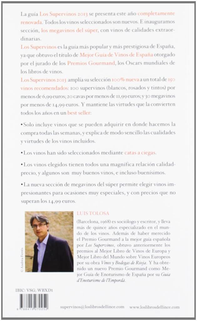 Los Supervinos: guía de los vinos del supermercado con excelente calidad-precio. Podría definirse de esta forma esta guía elaborada por Luis Tolosa, Los Supervinos (Los Libros del Lince, 2013) en la que analiza que el hecho de que un vino se venda en supermercados o grandes superficies no implica que sea vino de peor calidad.