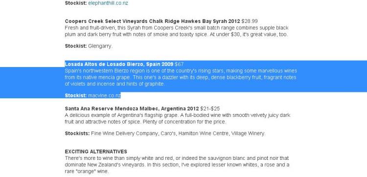 Losada Vinos de Finca llega a Nueva Zelanda. Y es que la bodega berciana ha sido recomendada en The top 50 wines of 2014 con uno de sus vinos, en concreto con Altos de Losado Bierzo, Spain 2009, artículo que aparece en New Zealand Herald, realizado por Wine editor Jo Burzynska’s.