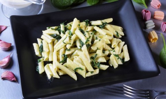 Macarrones con espinacas
