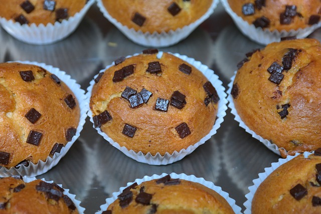 Magdalenas con pepitas de chocolate. Muy, pero que muy sencilla. Además que valen para acompañar en el desayuno, en el café de media tarde o a los que lo tomamos por la noche.