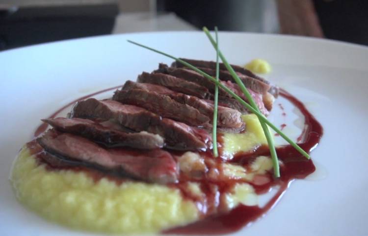 Magret de pato con puré de manzana anisada y reducción de vino tinto con especias (videoreceta)