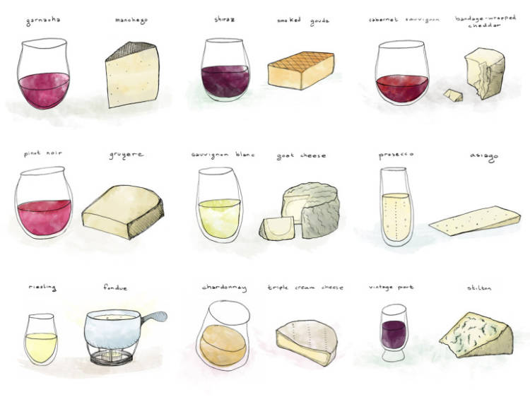 Cierto es que hay unos maridajes ya considerados como tradicionales entre queso y vino como podéis ver en esta infografía de Winefolly.com: