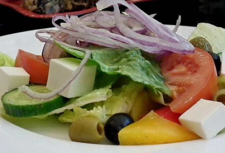 El queso feta es la característica fundamental de esta ensalada. Lleva muchas verduras frescas. Aliño de orégano y vinagre y aceite de oliva. Volvemos a creer que un espumoso es muy interesante. Si no abusamos del aliño, un Albariño o un Riesling serían dos buenas opciones de vinos blancos.