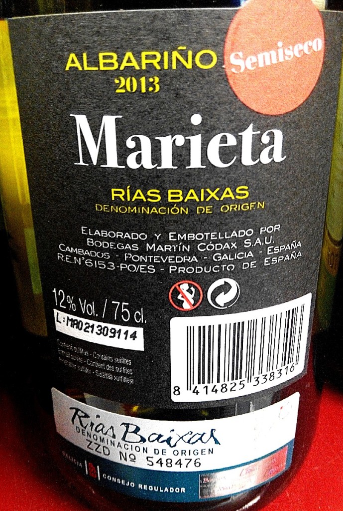 Hoy entre los vinos que hemos escogido para despedirnos del año, hemos tenido en cuenta este Marieta 2013, un vino semiseco elaborado por el Grupo Martín Codax.
