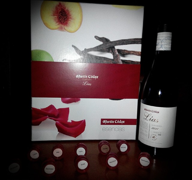 Si véis los 10 botecitos que hay en la foto, cada uno tiene la esencia de la cata en nariz: albaricoque, limón, manzana, cerveza,..., que denotan su estupenda carga frutal en nariz con el inconfundible toque atlántico de esta varietal. Toques a madreselva, heno y rosa con su correspondiente carga floral y herbácea y un fondo avainillado con toques de mantequilla y miel.