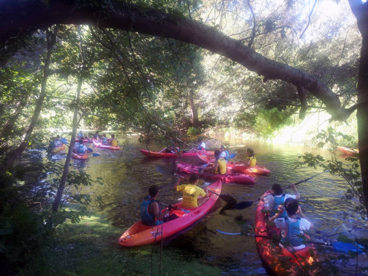 Ya el sábado, la subzona de Val do Salnés acogió por la tarde una bajada en kayak por el río Umia. Fueron una veintena de amantes del deporte los que realizaron el descenso fluvial para después recorrer las instalaciones de la bodega asociada Lagar de Pintos.