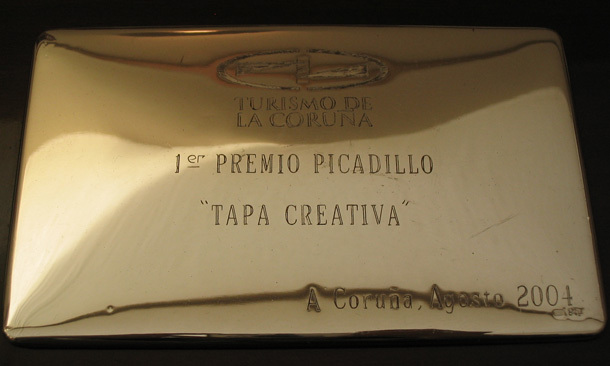 Hace más de un lustro que no voy a este establecimiento, que dicho sea de paso, siempre me ha encantado, y que ya allá por el 2004 llevó el 1º Premio Picadillo de 'Tapa Creativa', certamen de tapas creativas en A Coruña que se comenzó ese año a realizar y que continúa realizándose. El no pasar por el no me ha permitido estar al día en sus últimas creaciones y, sobre todo, en esta Mc Pulpiño que es uno de sus pinchos estrella.
