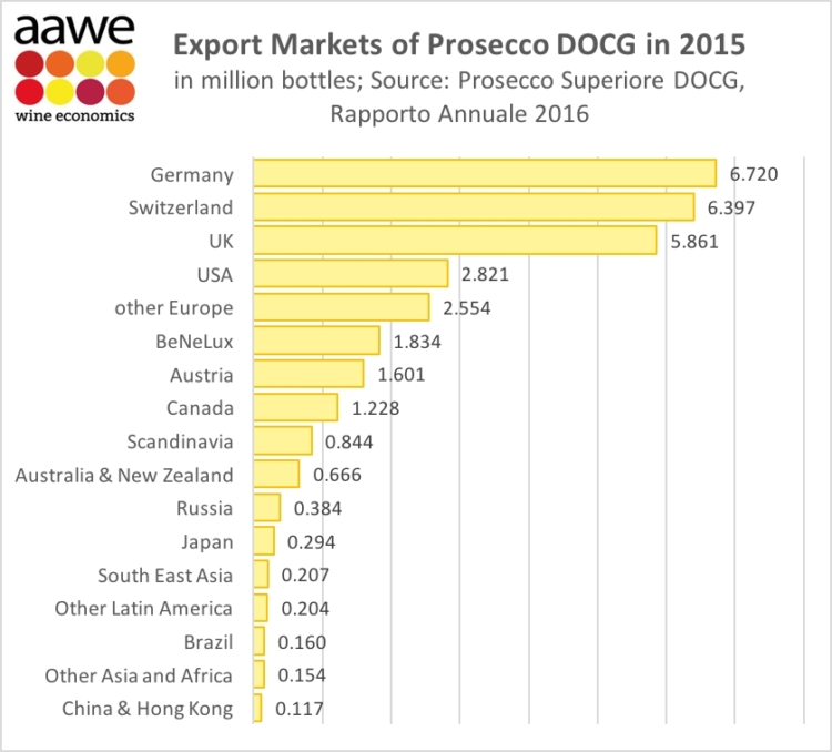 Mercados principales del Prosecco italiano