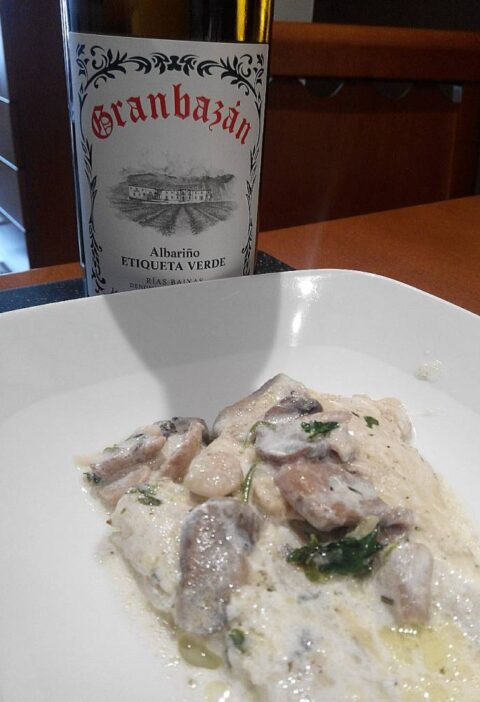 Un vino que acaba de salir al mercado en una producción muy limitada y del cual ya es difícil conseguir alguna botella. Una de las últimas creaciones del enólogo berciano Raúl Pérez en su proyecto Camino del Norte, Compañía de Vinos. Un vino elaborado en el Bierzo pero que no se encuentra dentro de la DO. Vino potente en nariz y boca con un toque de frescor que deja en el paladar un gusto frutal muy intenso. Mucho menos ácido que los Ribeiros o los Txacolís, lo consideramos ideal para apoyar a esta receta ya que no se superpone al sabor de la merluza ni de la salsa, sino que lo potencian.