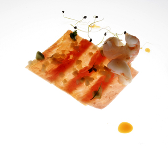 - Salsear y terminar con un langostino en un extremo del carpaccio.
