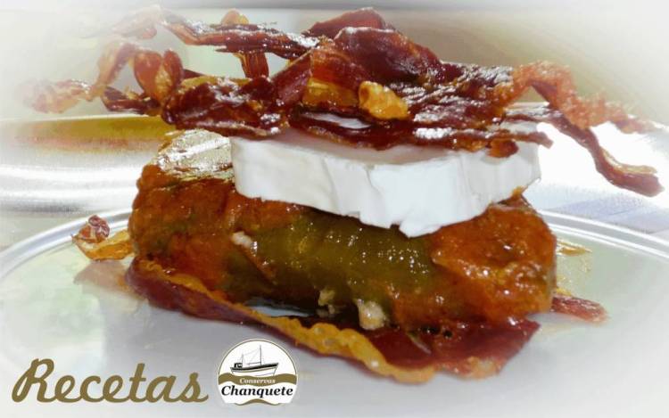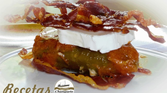 Hacía tiempo que no os dejábamos una receta de nuestros amigos de Conservas Chanquete, por eso hoy os dejamos esta exquisitez como es este Montado de pimiento del piquillo verde relleno de chanquete salvaje en salsa de tomate con rulo de cabra y crujiente de jamón ibérico.