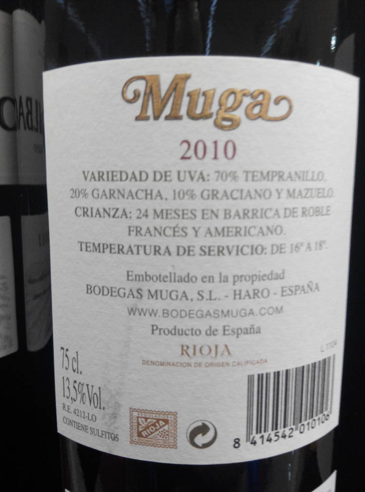 Muga Crianza 2010, un clásico de Bodegas Muga que nunca defrauda. Puede que haya añadas mejores, pero nunca hay una mala.