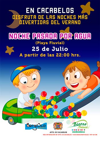 Y s que el Ayuntamiento de la localidad 'de acuerdo' con BierzoNatura pondrá en marcha este viernes 25 de julio la denominada como Noche pasada por agua, que no es más que una fiesta infantil acuática nocturna, que se va a desarrollar en la playa fluvial de la localidad.