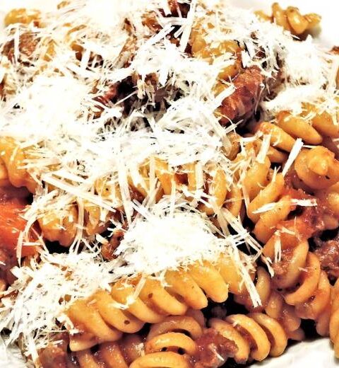 Cuando esté solo queda emplatar. Recordar un consejo, para emplatar pasta como los noodles o los espagueti, ponemos el tenedor en alto con la pasta sobre el plato y lo vamos giramos a medida que dejamos caer la pasta, haciendo un efecto montaña muy chulo que nos facilita echarle luego el bacon y el pimiento, así como las tiras de queso y que cubran todos los noodles fácilmente. Para terminar se espolvorea el queso rallado por encima.