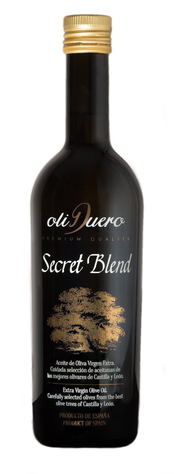 Oliduero Secret Blend es un Aceite de Oliva Virgen Extra de categoría premium elaborado con una proporción exacta de aceitunas de diferentes variedades (Arbequina, Arbosana y Picual, entre otras) cultivadas en los olivos que posee Oliduero en Castilla y León, concretamente en Toro, Zamora, y Pozaldez, Valladolid. La cantidad exacta de cada tipo de aceituna como el número y variedades que lo componen son el secreto del maestro almazarero.