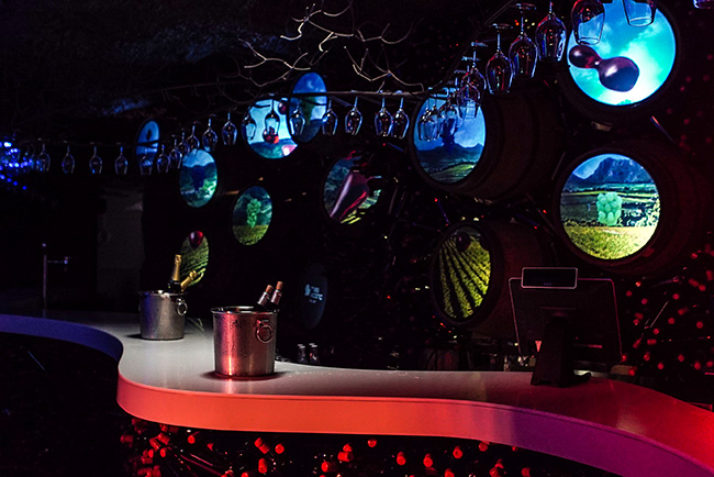 La especialista en cerámica también ha participado en el diseño y la construcción del singular espacio de baño del nuevo local. Asimismo, también ha proporcionado parte del material para el mobiliario de la sala principal en La Diva: una icónica barra, con formas sinuosas, y cuatro mesas redondas de superficies extra-blancas, para 10 comensales cada una, ambas realizadas con el material mineral Surfex, extremadamente duradero, higiénico y reciclable que permite libertad en la creación de formas. El mismo material está presente también en La Odisea, el comedor multisensorial que alberga una mesa circular de grandes dimensiones.