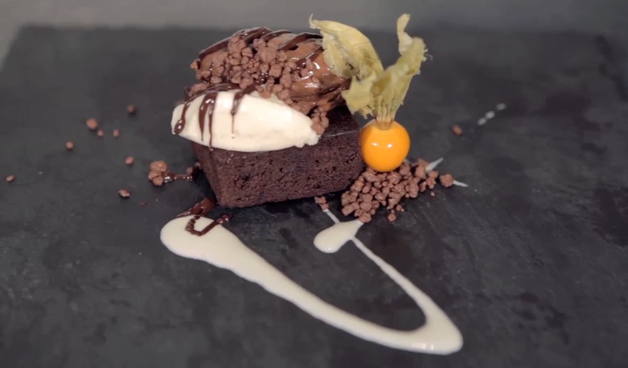 Orgasmo de chocolate es el sugerente nombre del postre que os traemos hoy de la mano de Zarautz Taberna Vasca, y del que huelga decir que tiene como principal ingrediente el chocolate. Se hace por partes porque se necesita al final ensamblar todo en el mismo plato.