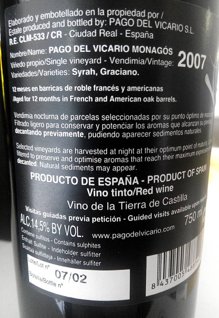 Pago del Vicario Monagos Syrah-Graciano 2007