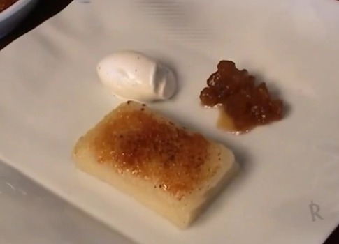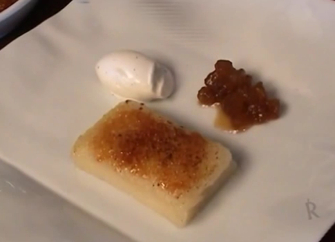 Pantela de manzana y miel, helado de vainilla y pimienta