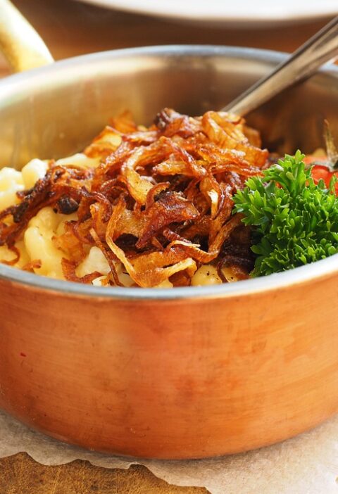 Se rehogan con la mantequilla sin que cojan color. Se añade la miel y se cuece a fuego muy suave hasta que queden traslúcidas (25 minutos). Se reserva.