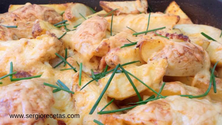 Igual de fácil en su elaboración, es lo buena que está esta receta de Patatas al horno especiadas con bacon y queso que nos trae hoy nuestro amigo Sergio en su rincón. La propuesta del queso en esta ocasión es queso gouda, pero podéis incluir el queso que más os guste.