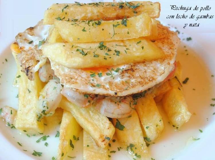 ¿Quién dijo que a una pechuga de pollo no se le podía dar un toque novedoso en la presentación? Nosotros hemos probado a combinar dos platos que a los más pequeños les encantan como son la típica pechuga de pollo con patatas fritas y la salsa carbonara con gambas, es típica que se le echa a los espaguetis. Y, francamente, nos ha encantado.
