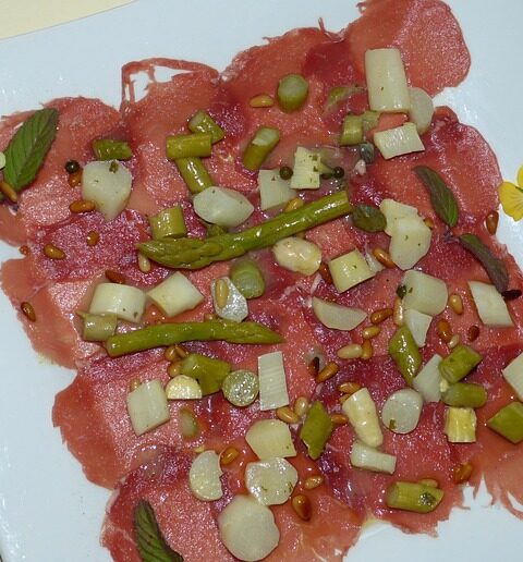 - Pollo. Adobamos las pechugas de pollo. Nosotros hemos troceado muy picado ajo y lo ponemos por encima al freirlas, con un poco de pimienta blanca y un poquito de perejil. Hacerlas como siempre, en la sartén a fuego medio y que se hagan bien por los dos lados.