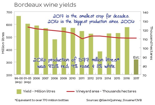 Pero señala que gracias a tres muy buenas cosechas sucesivas, todavía hay muchas cosas buenas que salen de Burdeos antes de que se sienta el impacto de un pequeño 2017.
