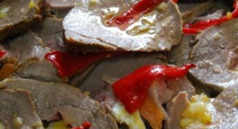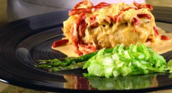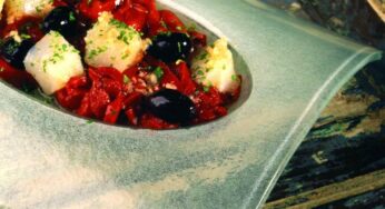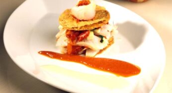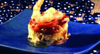 Revuelto de pimientos asados del Bierzo, oricios y langostinos