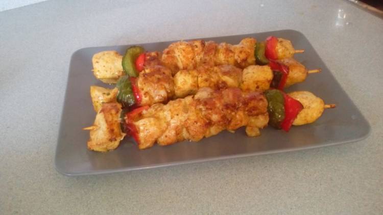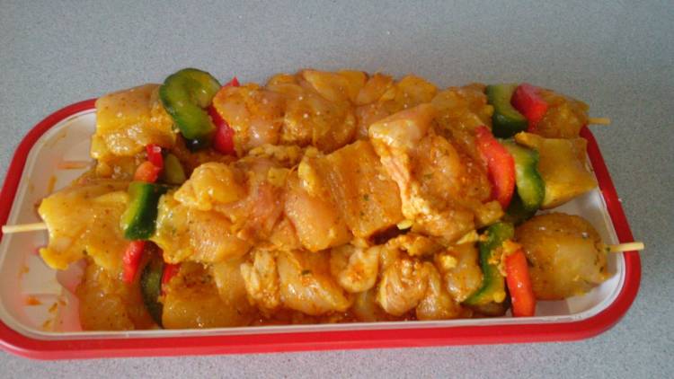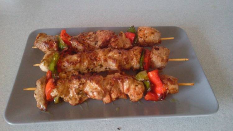 En ambos casos la receta lleva aparejados pimientos rojos y verdes en el pincho que también se van a hacer a la parrilla a la vez que la carne.