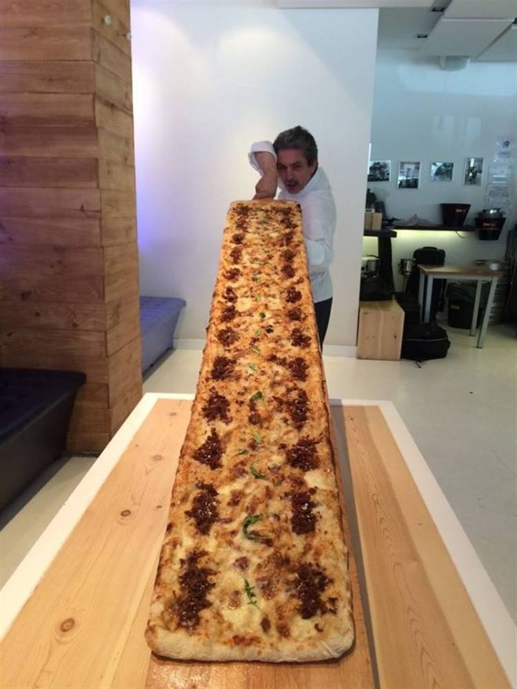 Esta idea ha sido puesta en práctica por el restaurante Kilómetros de Pizza, creador de la pizza gourmet de dos metros, y que ahora ha añadido a su carta una interesante propuesta taurina en homenaje al mundo del toro y de las festividades de San Isidro: la pizza Matador.
