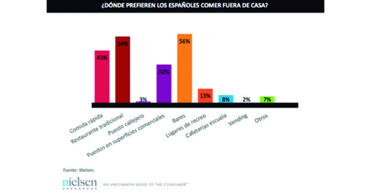 El 56% de los españoles opta por el bar para comer fuera de casa, según el informe.