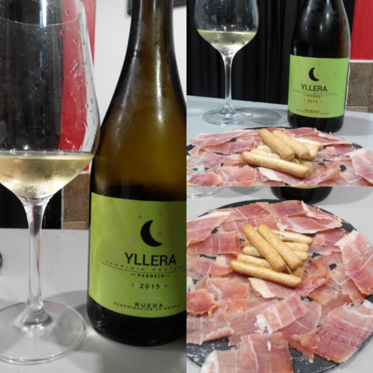 Seguimos la cata de vinos Verdejos con dos de Bodegas Yllera. El primero es el Yllera Verdejo Vendimia Nocturna 2015. Hemos decidido maridarlo con algo que nunca falla, como es el jamón. Una combinación excelente que ha encantado a los asistentes