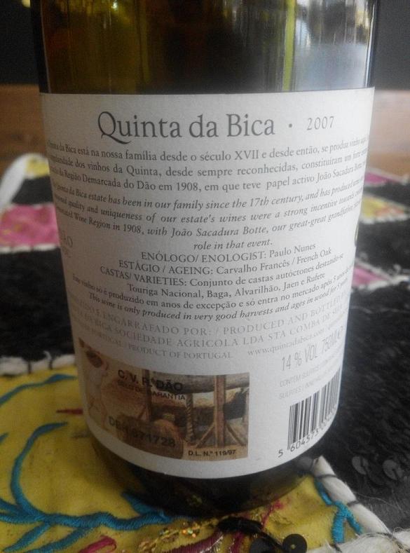 Una grata sorpresa inesperada nos hemos llevado este fin de semana con este vino, Quinta da Bica Vinhas Velhas 2007, dentro de nuestra sección de vinos de Portugal.