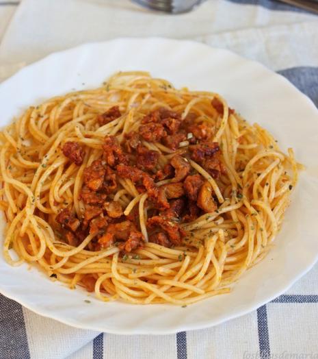 Hoy os traemos esta receta de Espaguetis con picadillo de cerdo adobado que nos han prestado nuestros amigos de El Palillo Leonés ya que el picadillo de cerdo adobado es propio de esta zona y de Galicia, en general de la zona norte de España. Picadillo de cerdo adobado, zorza, picadillo, la prueba,..., cualquiera de estos nombres vale para que sepáis lo que le vamos a echar a los espaguetis en esta receta.