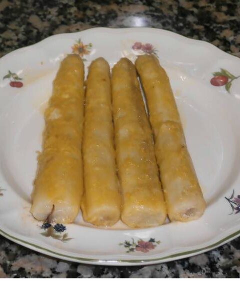 - Cortar las patatas a rodajas finas y freírlas durante unos minutos sin que lleguen a tomar color.