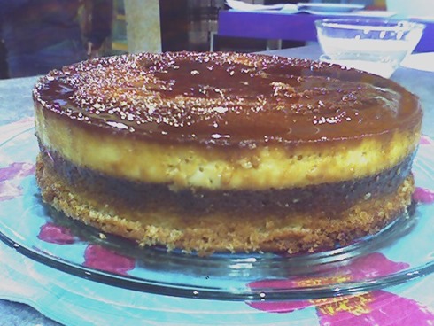 - Acaramele el molde y vierta la preparación de quesillo y sobre esta vuelque la mezcla de torta.
