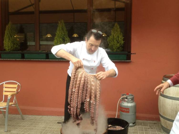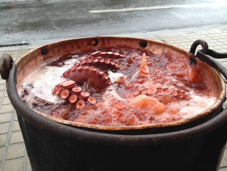 Aquí lo podemos ver cociendo un pulpo en estas ollas: